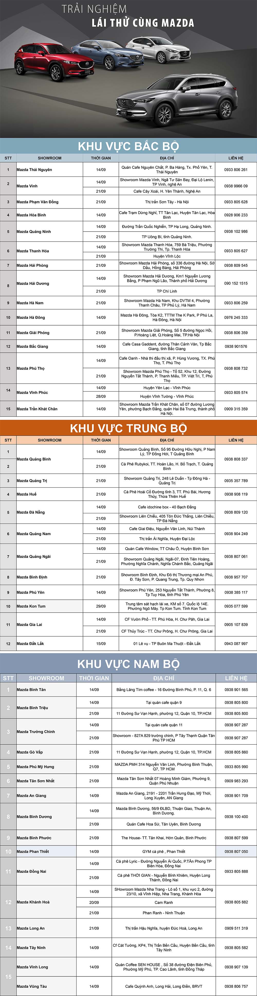 Từ ngày 01/07 đến ngày 31/07/2019, Mazda Việt Nam áp dụng chương trình ưu đãi giảm 20% nhớt động cơ chính hãng và giảm 10% lọc nhớt, lọc nhiên liệu, lọc gió động cơ và lọc gió điều hòa cho tất cả các khách hàng sử dụng xe Mazda trên toàn quốc.